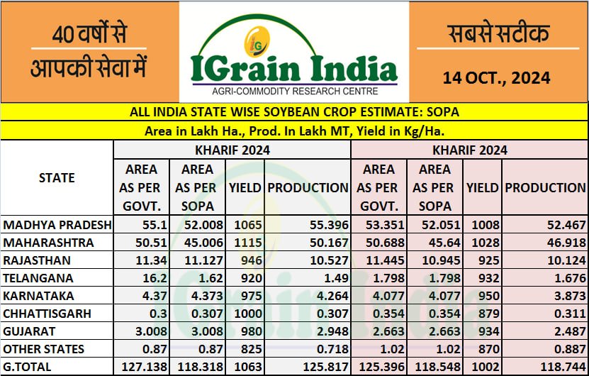 ALL INDIA STATEWISE SOYBEAN CROP ESTIMATE BY SOPA