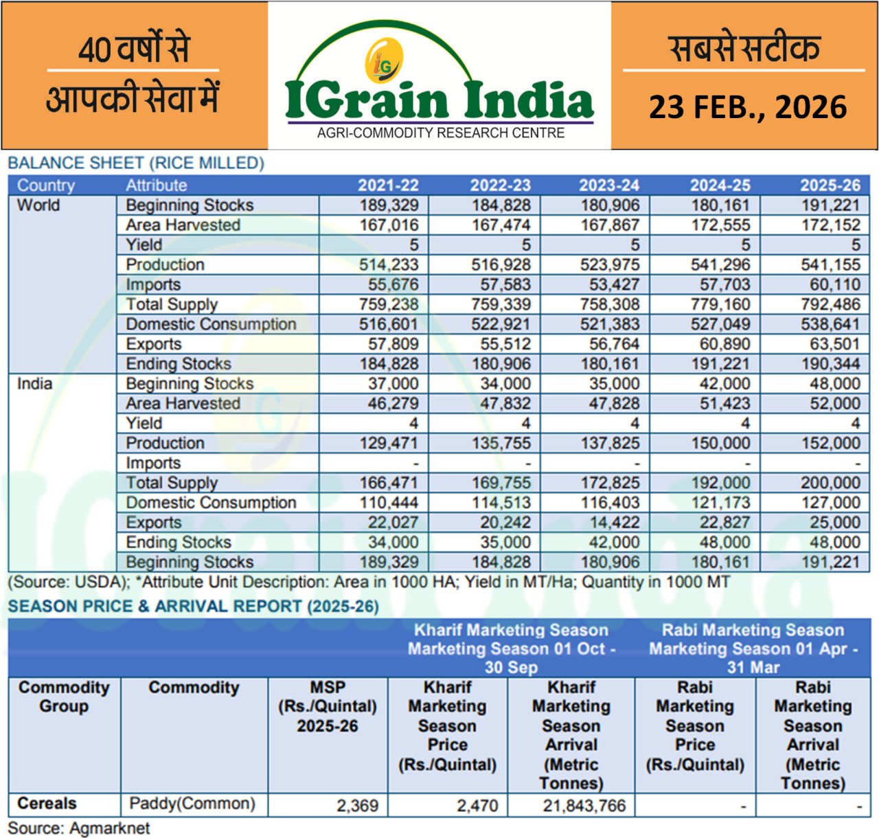 MILLED RICE BALANCE SHEET