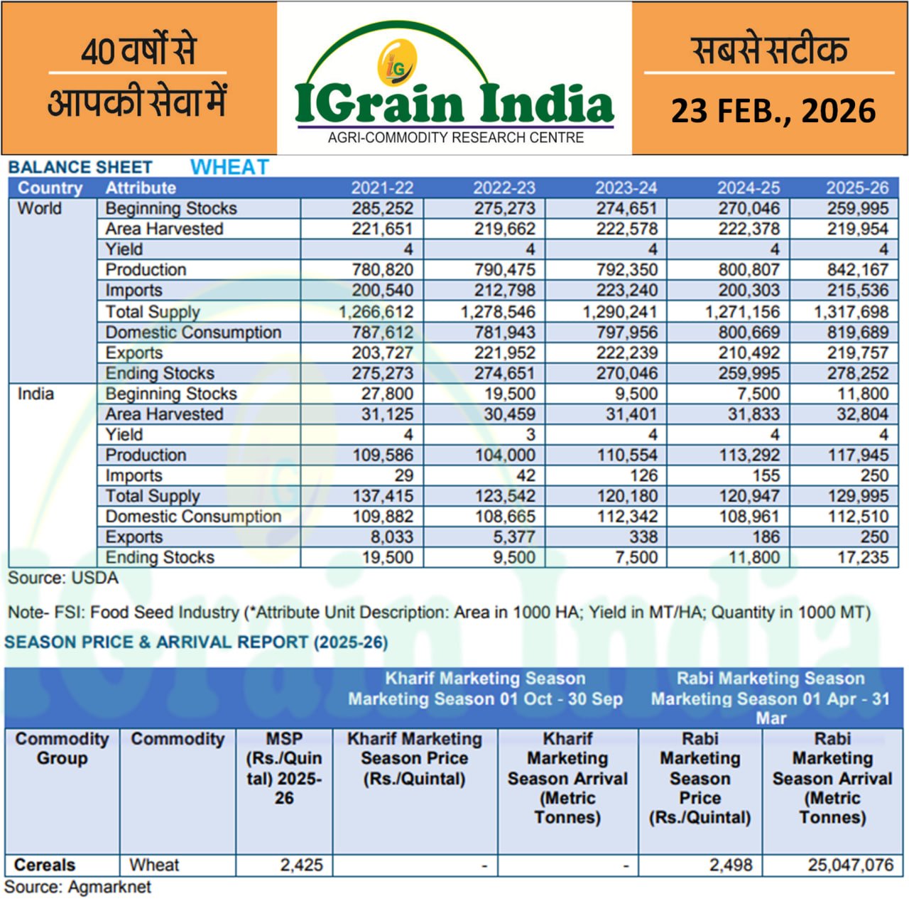 WHEAT BALANCE SHEET
