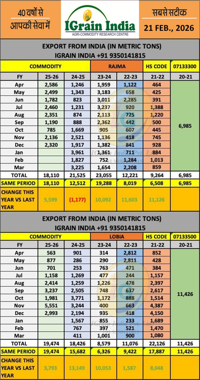 RAJMA LOBIA EXPORT DATA