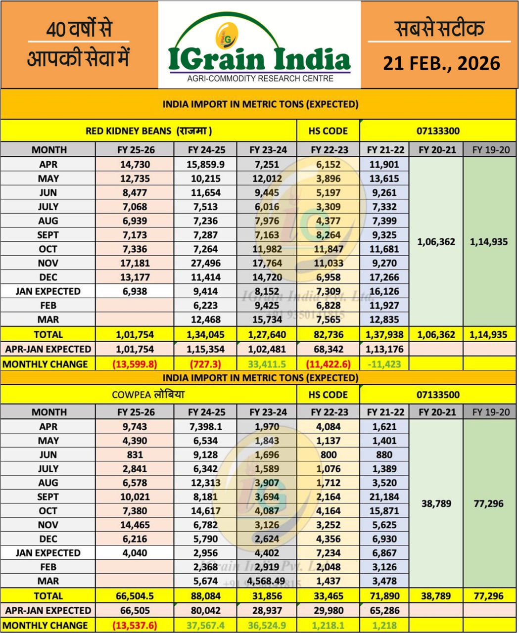 LOBIA RAJMA IMPORT DATA