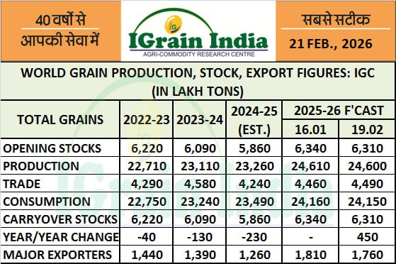 WORLD GRAIN PRODUCTION, STOCK, EXPORT FIGURES: IGC