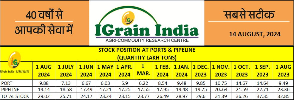 VEG OIL STOCK POSITION AT PORT AND PIPELINE