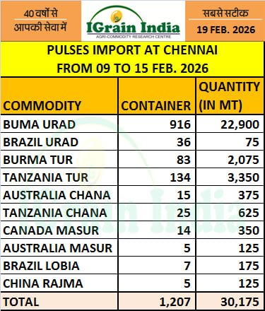 PULSES IMPORT AT CHENNAI