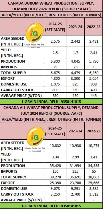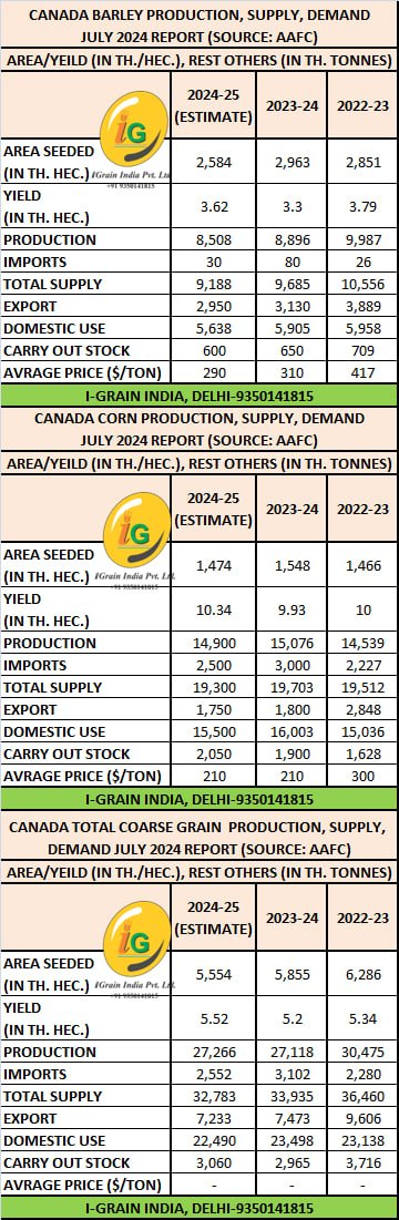 CANADA AAFC GRAINS JULY 2024 REPORT