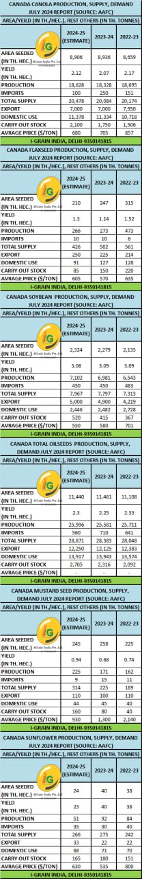 CANADA AAFC OILSEED JULY 2024 REPORT