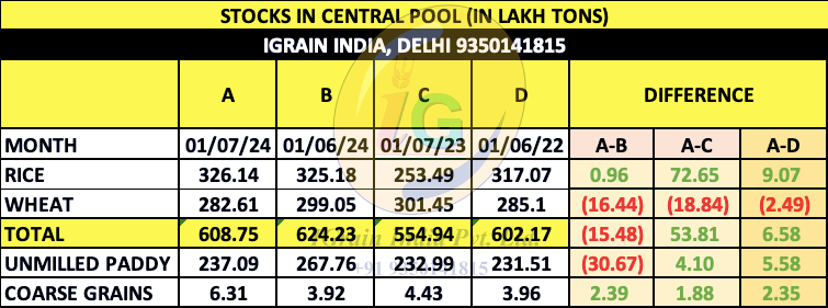 Stocks in Central Pool till 01 July Wheat, Rice, Paddy & Coarse Grains