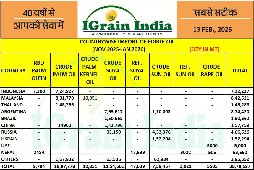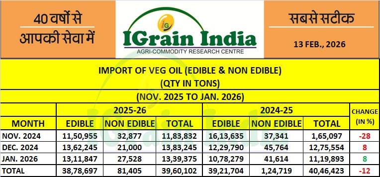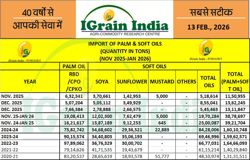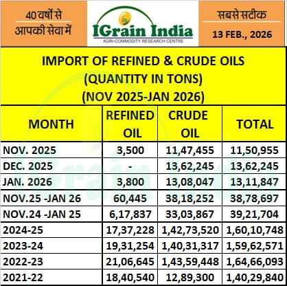 Imports of edible oils increased to 13.10 lakh tonnes in January