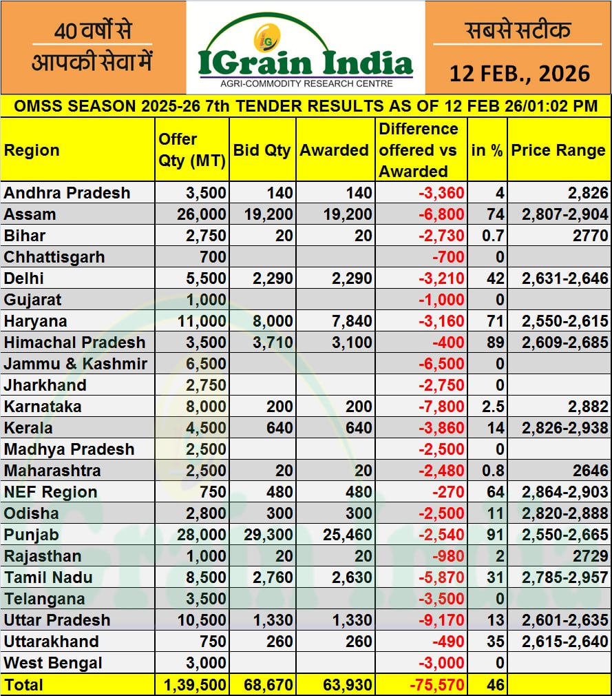 OMSS SEASON 2025-26 7th TENDER RESULTS