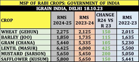 रबी फसलों के समर्थन मूल्य में 105 से 425 रुपए प्रति क्विंटल तक की भारी वृद्धि