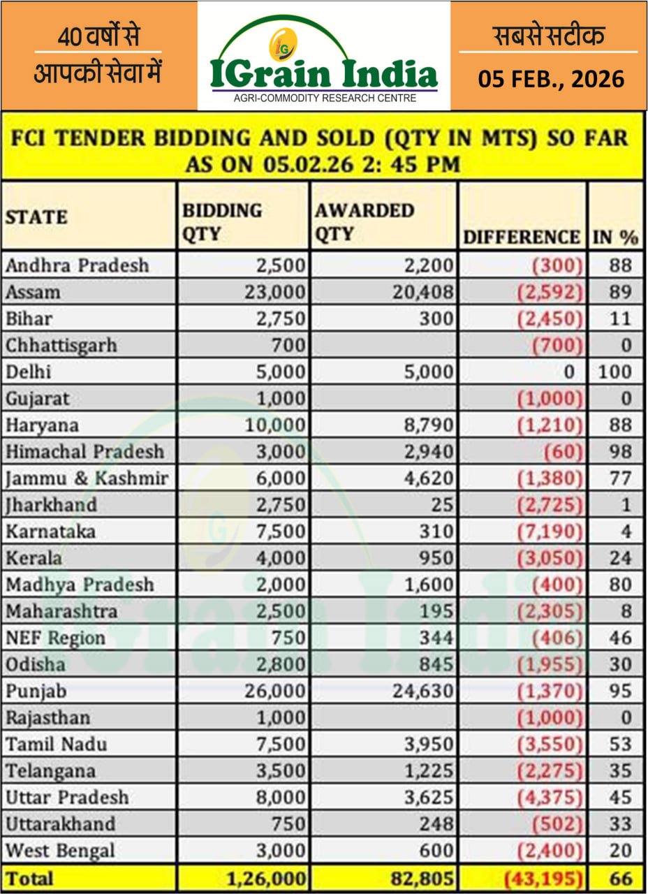 WHEAT FCI TENDER BIDDING AND SOLD QUANTITY