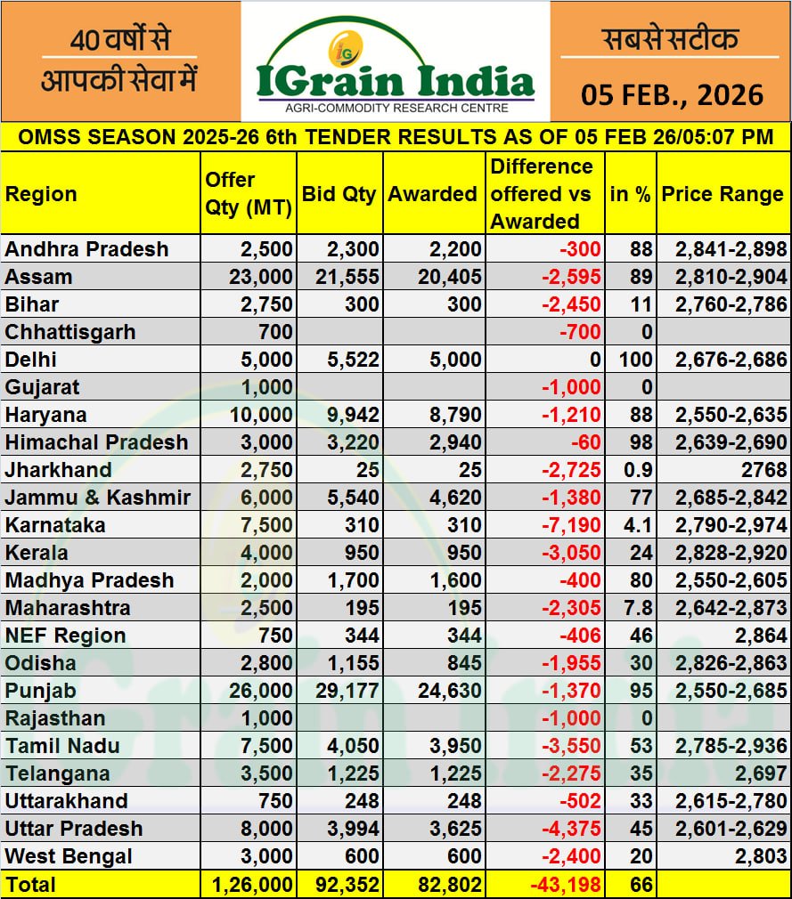 OMSS SEASON 2025-26 6th TENDER RESULTS