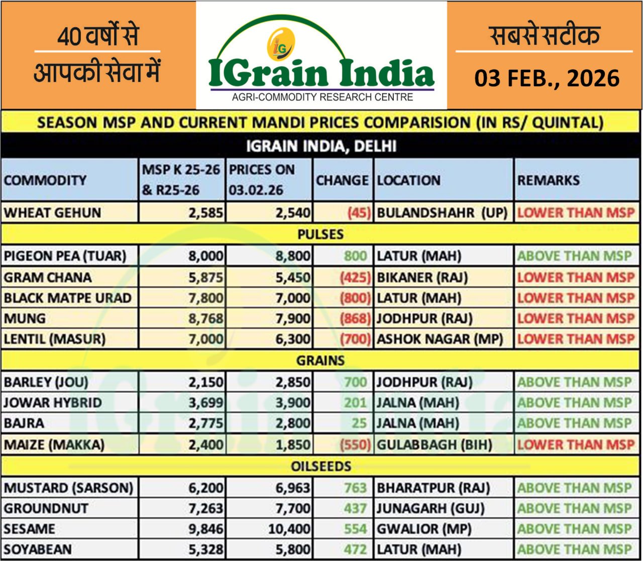 SEASON MSP AND CURRENT MANDI PRICES COMPARISON