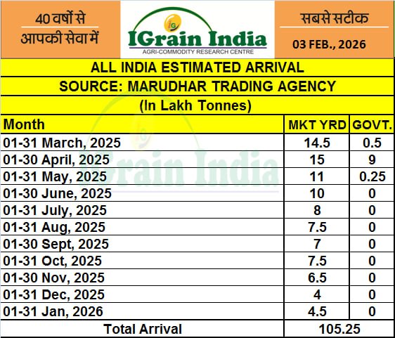 ALL INDIA ESTIMATED MUSTARD ARRIVAL