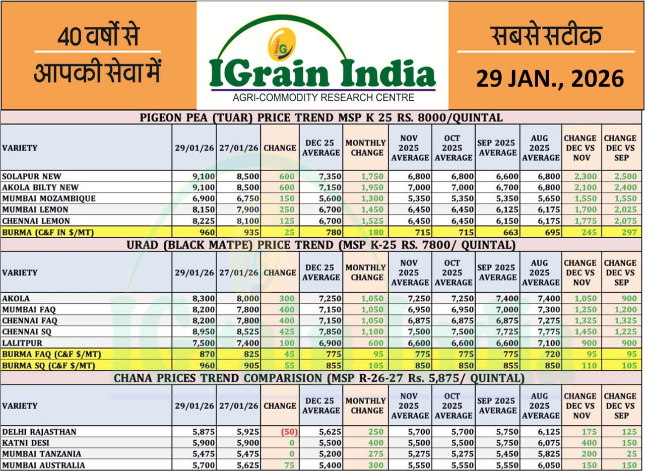 महंगे आयात एवं कमजोर उत्पादन से तुवर के दाम में सुधार