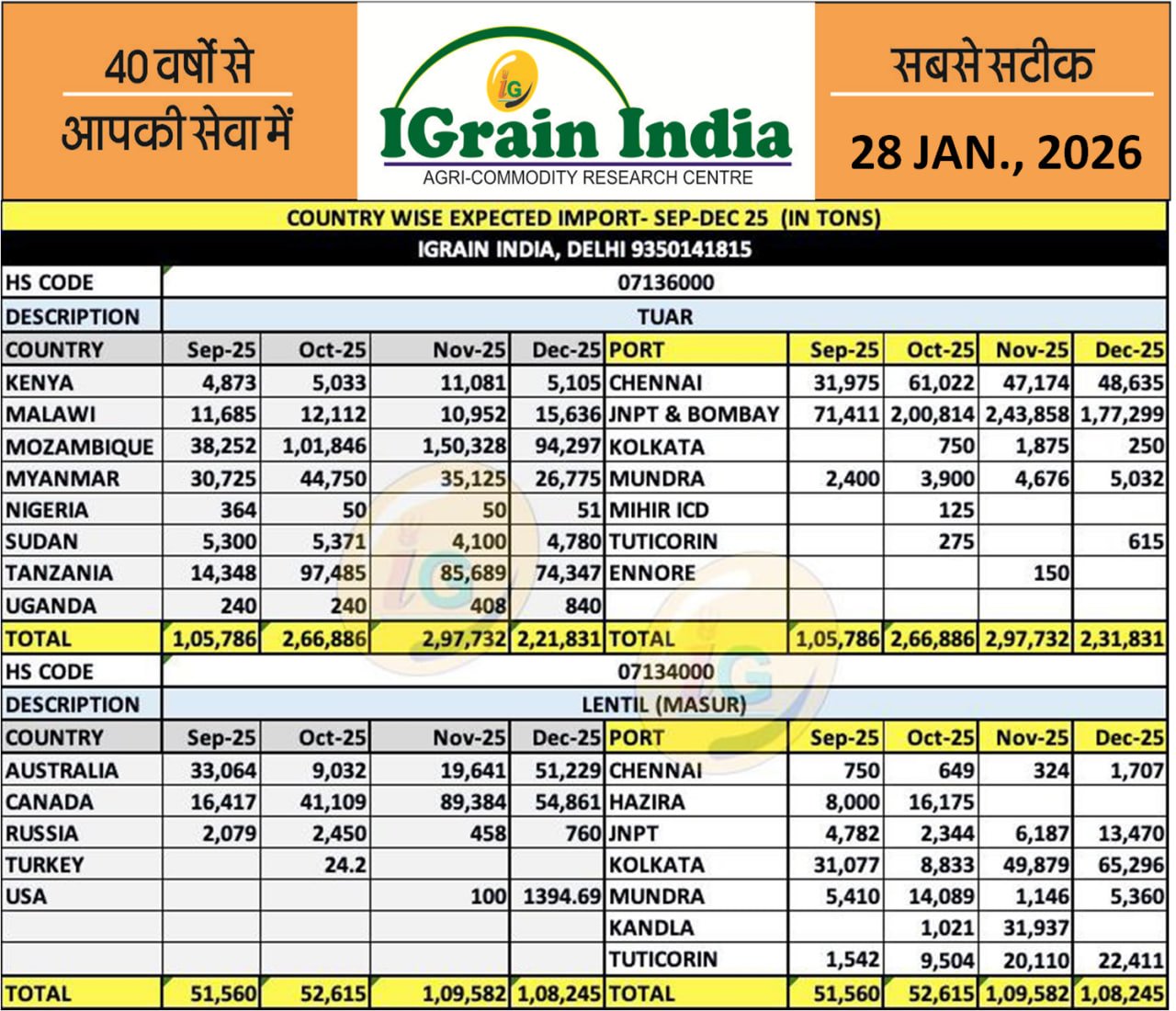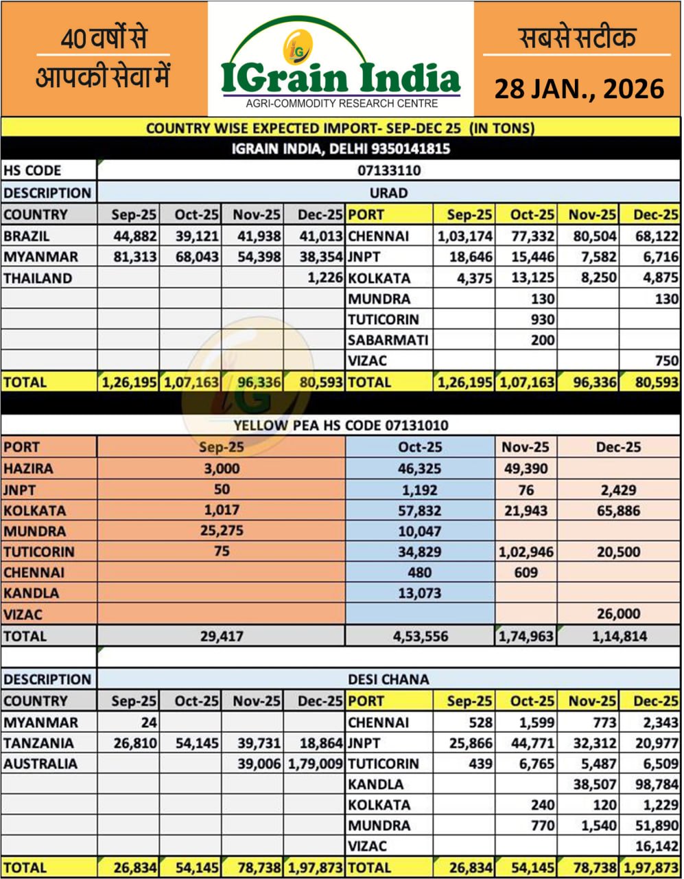 COUNTRYWISE URAD CHANA MATAR IMPORT DATA