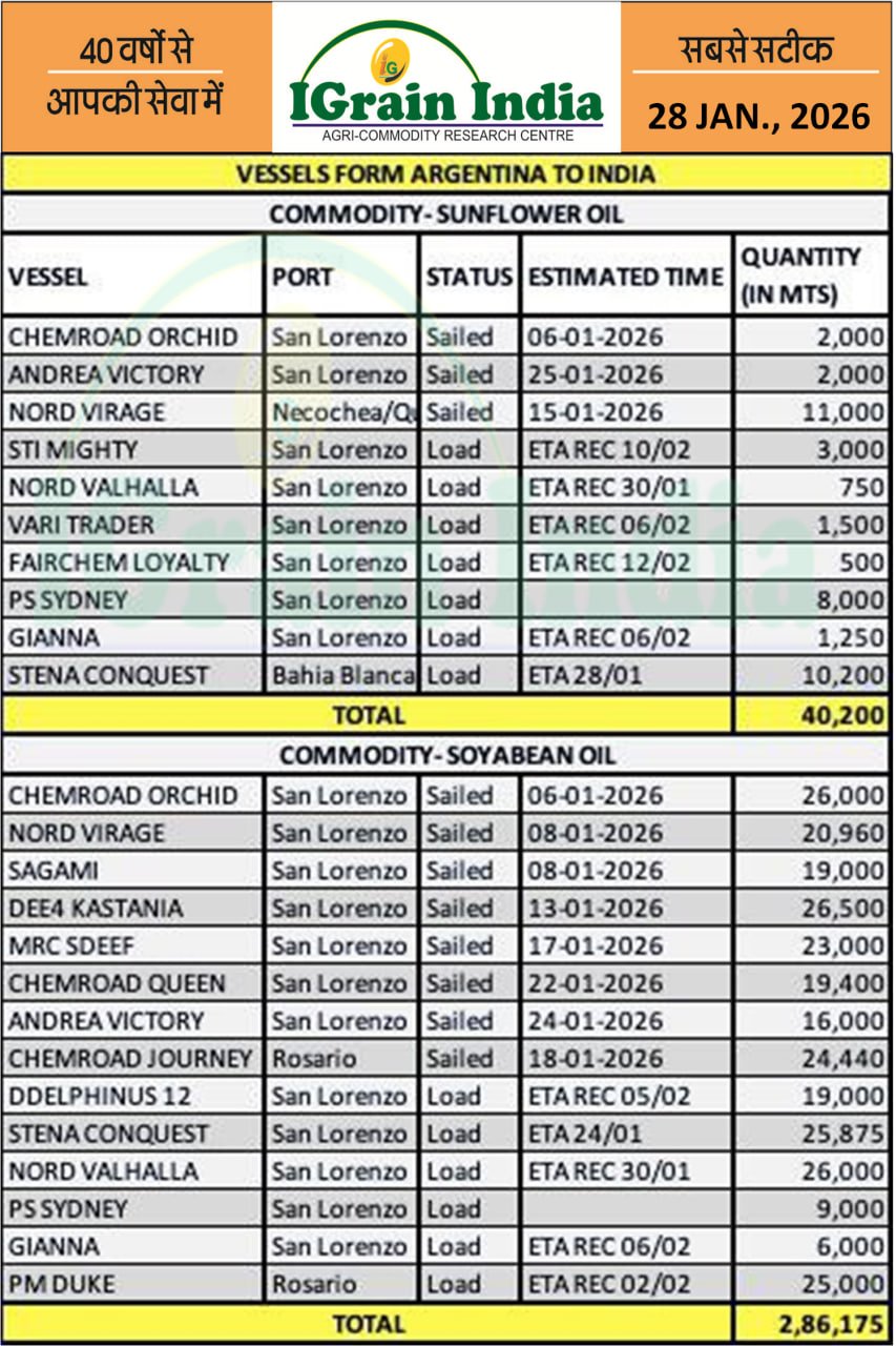 VESSEL FROM ARGENTINA TO INDIA