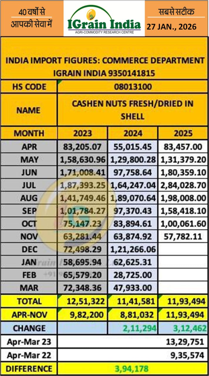 CASHEW NUT IMPORT DATA