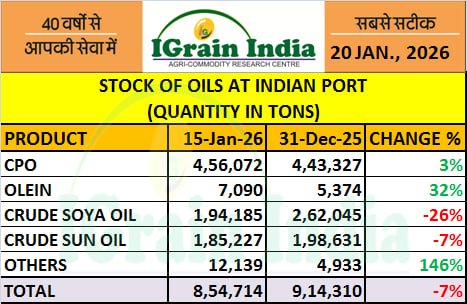 चीन के बंदरगाहों पर तेल-तिलहन के स्टॉक में कमी