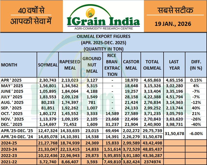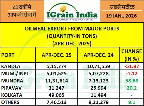 OILMEAL EXPORT FROM MAJOR PORTS