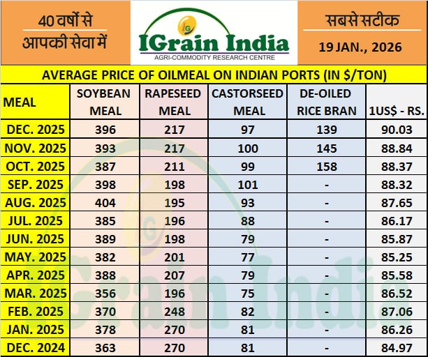 AVERAGE PRICE OF OILMEAL ON INDIAN PORTS