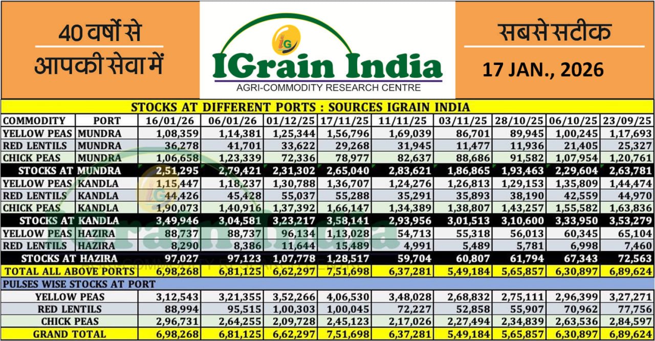 PULSES STOCK AT DIFFERENT PORTS