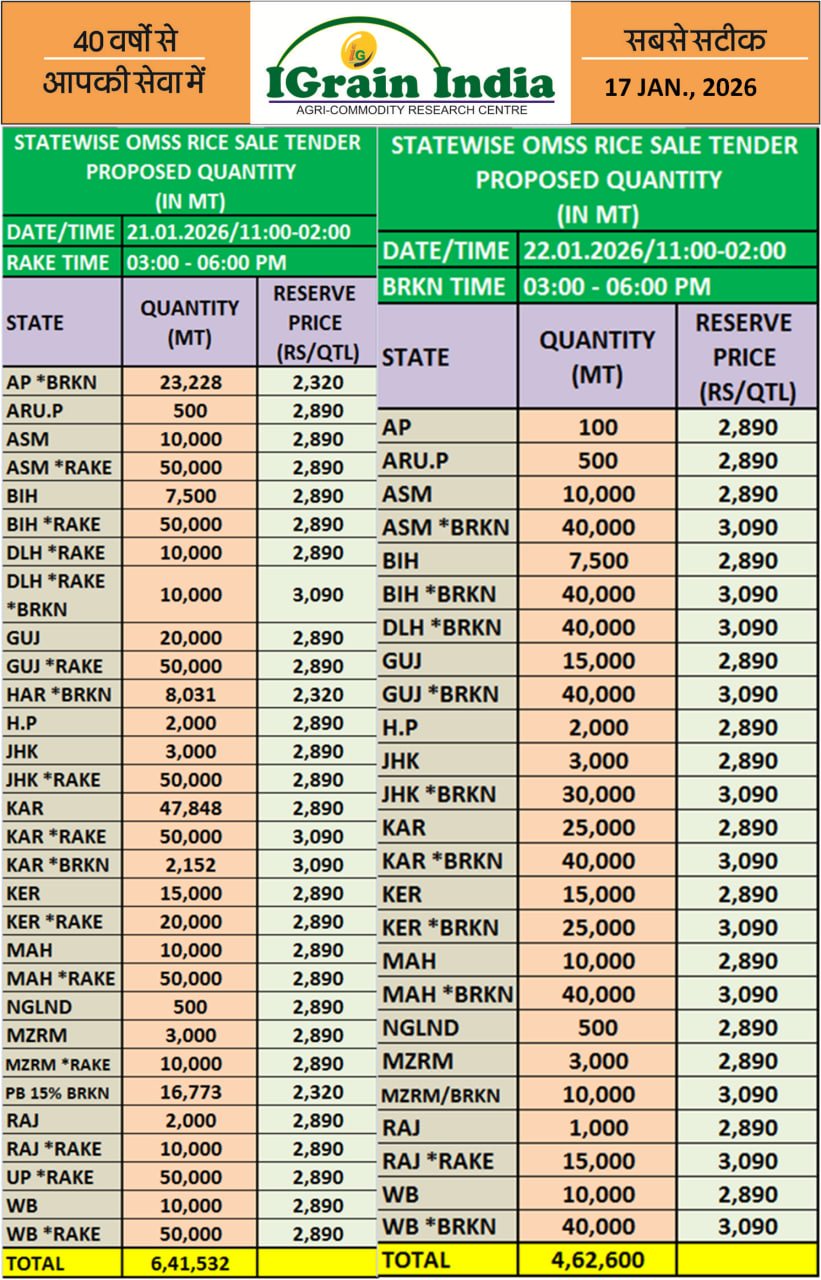STATEWISE OMSS RICE SALE TENDER PROPOSED QUANTITY