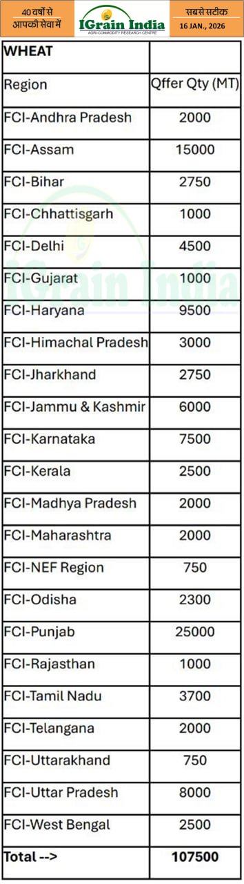 FCI OMSS WHEAT SALE 4TH TENDER PROPOSED QUANITITY