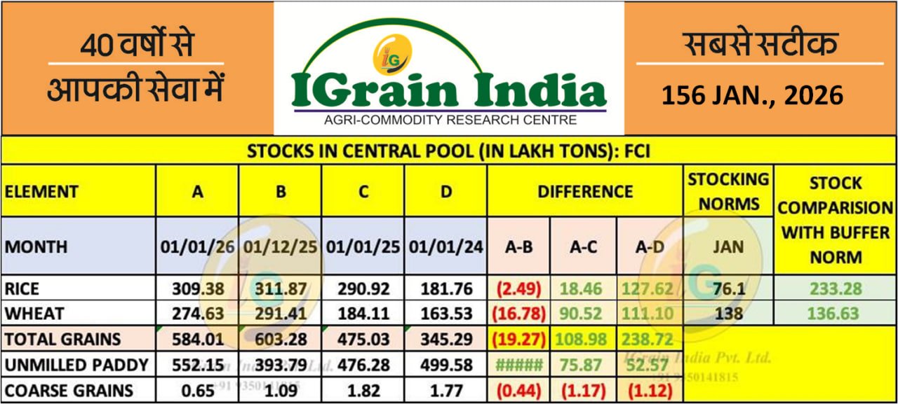 GRAINS STOCK IN CENTRAL POOL: FCI