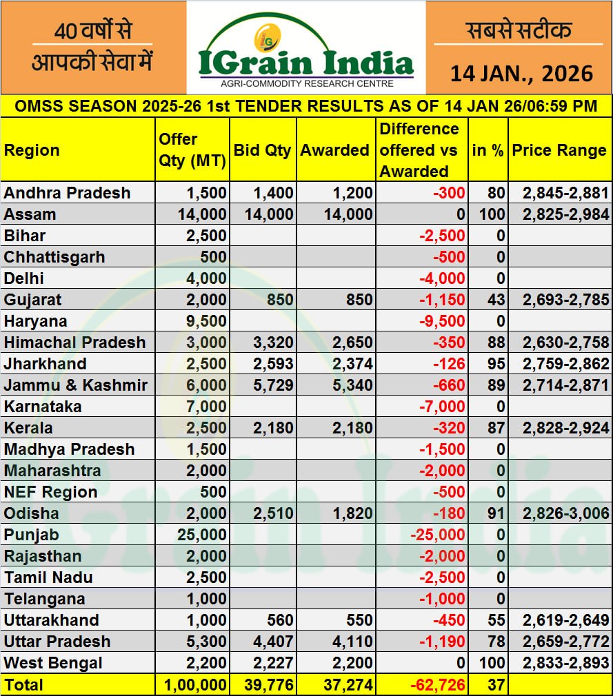 OMSS SEASON 2025-26 1st TENDER RESULTS