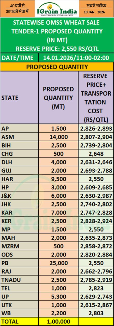 STATEWISE OMSS WHEAT SALE TENDER-1 PROPOSED QUANTITY