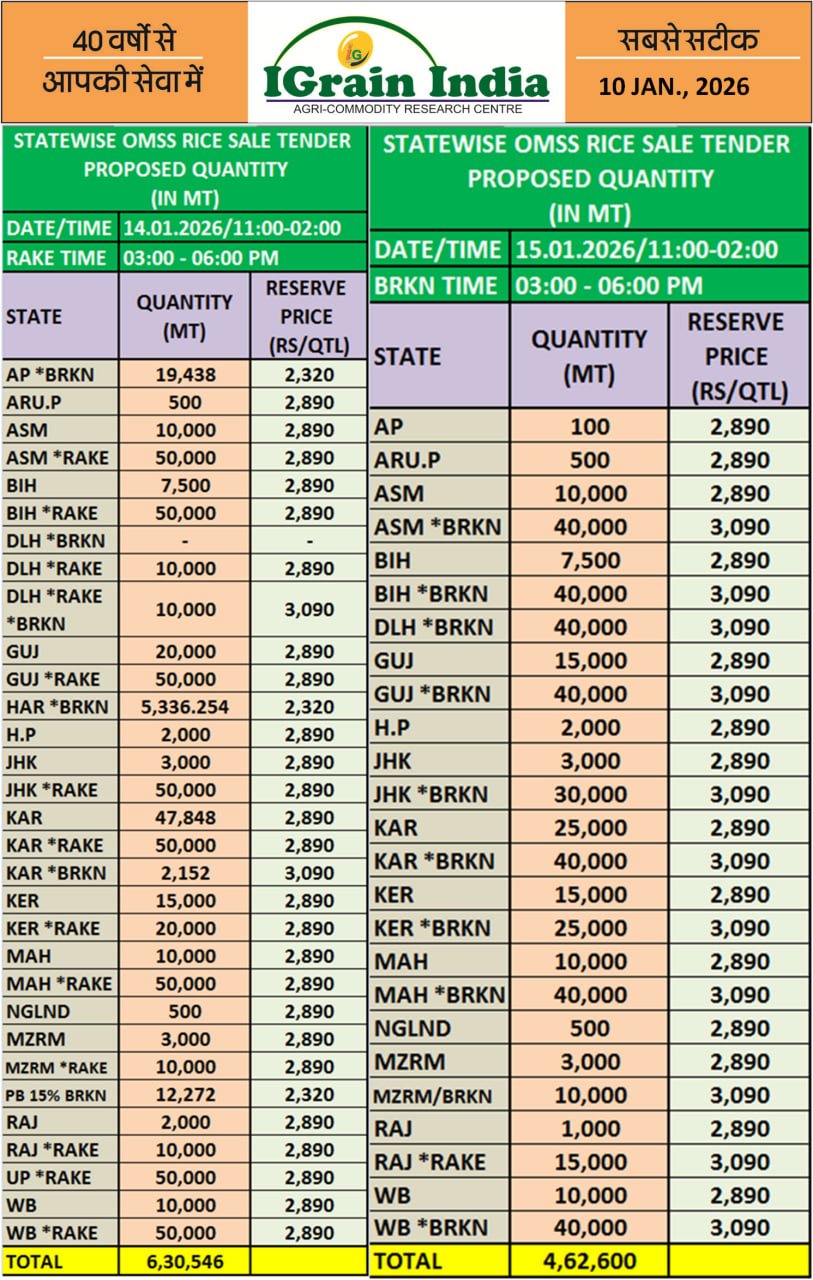 STATEWISE OMSS RICE SALE TENDER PROPOSED QUANTITY