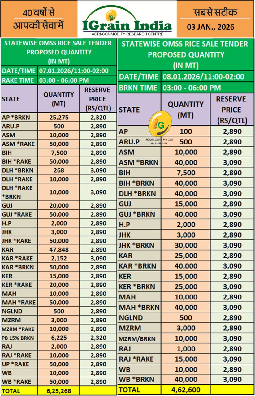 STATEWISE OMSS RICE SALE TENDER PROPOSED QUANTITY