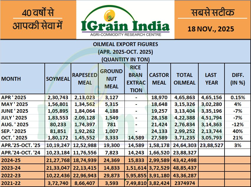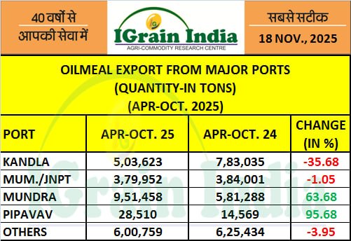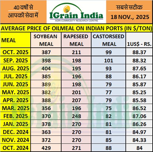 AVERAGE PRICE OF OILMEAL ON INDIAN PORTS