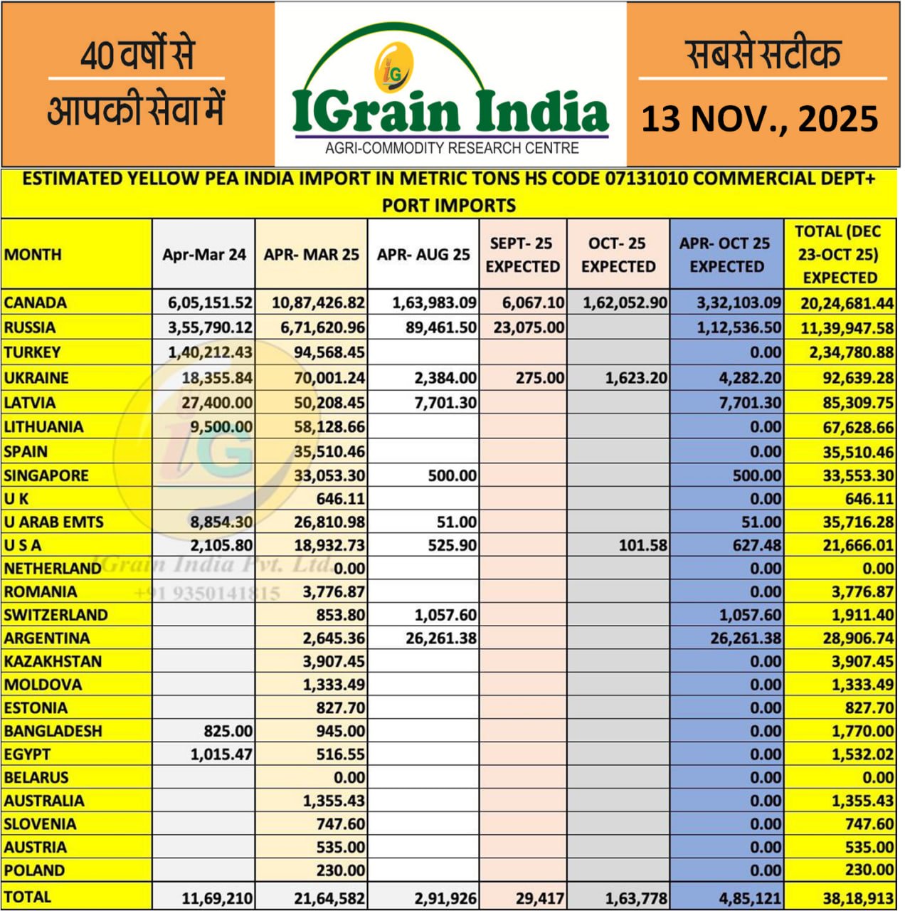ESTIMATED YELLOW PEA IMPORT