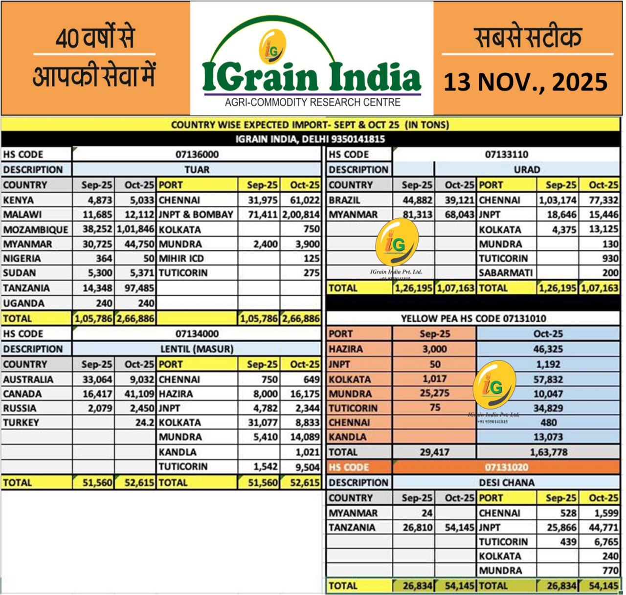PULSES: COUNTRYWISE EXPECTED IMPORT