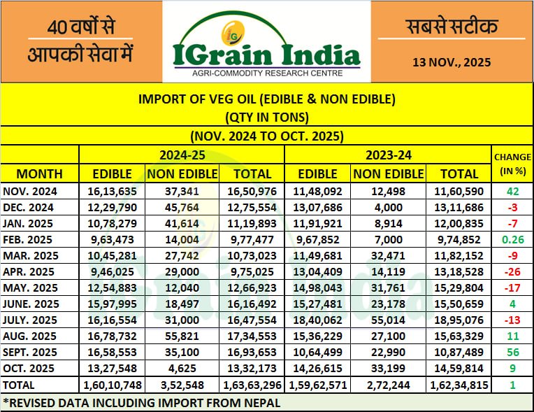 IMPORT OF VEG OIL (EDIBLE & NON EDIBLE)