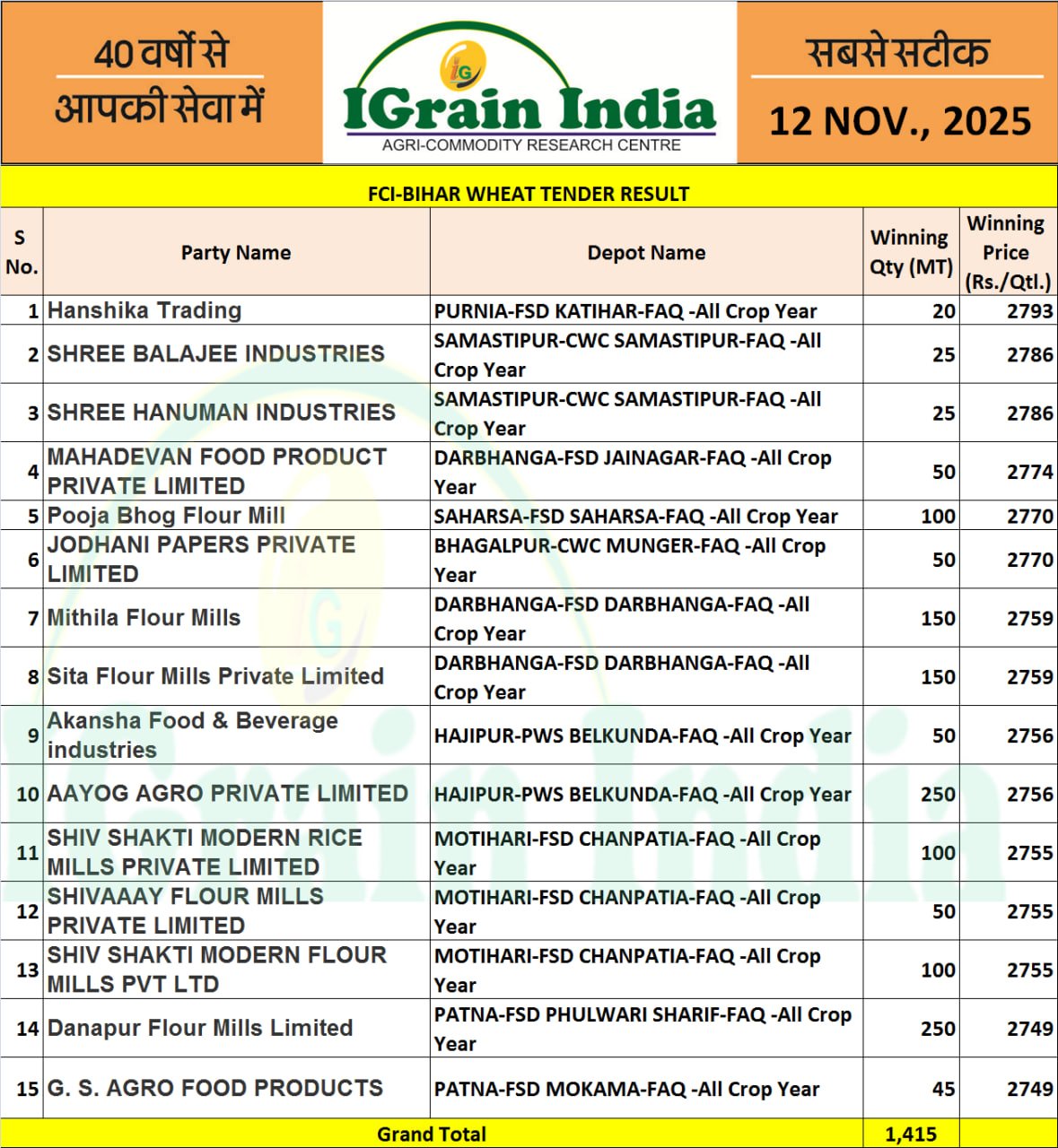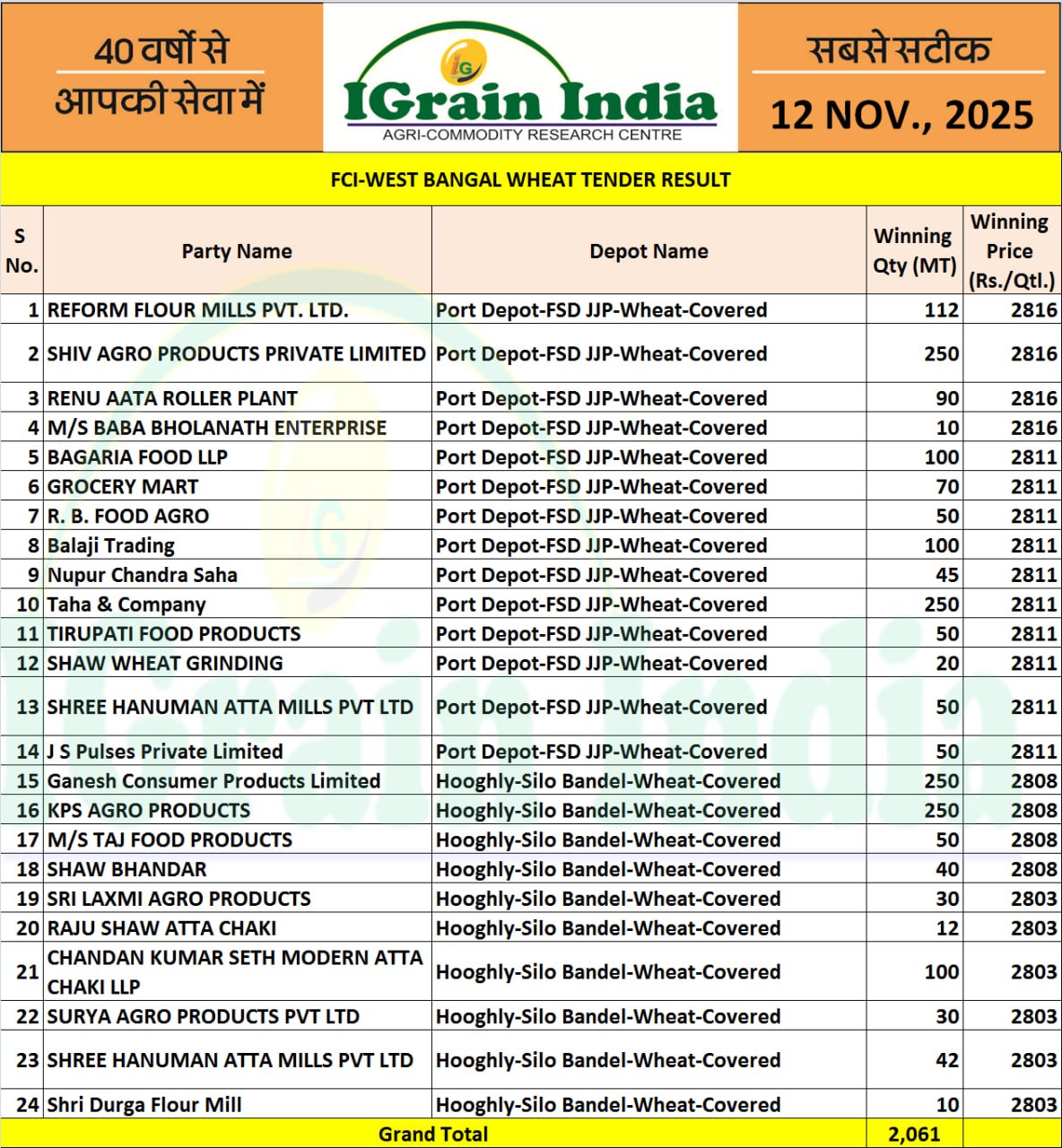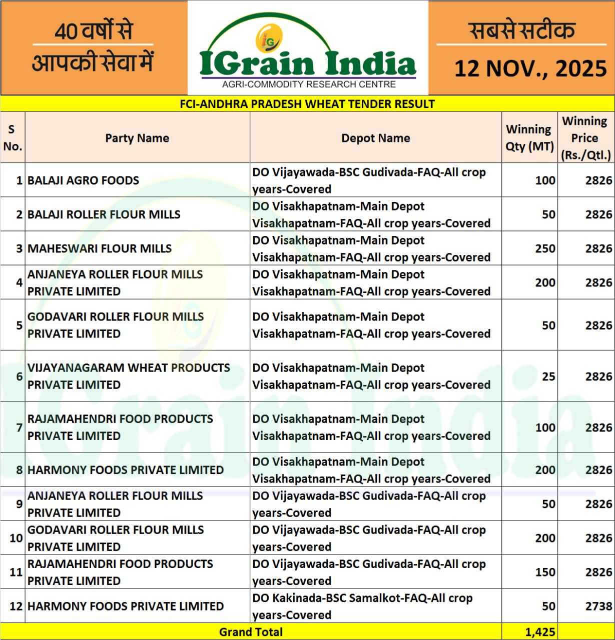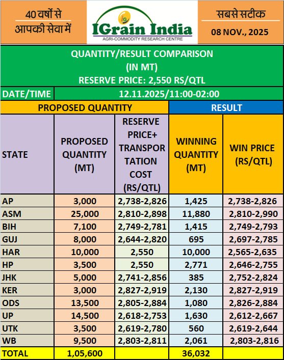 STATEWISE OMSS WHEAT SALE TENDER-1 PROPOSED QUANTITY/RESULT COMPARISON