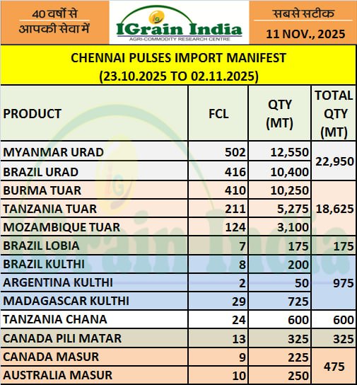 CHENNAI PULSES IMPORT MANIFEST