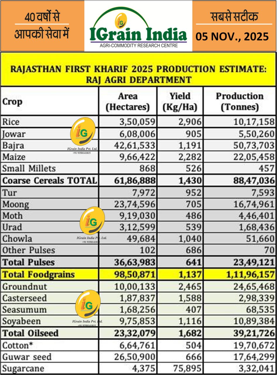 RAJASTHAN FIRST KHARIF 2025 PRODUCTION ESTIMATE