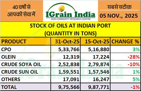 STOCK OF OILS AT INDIAN PORT