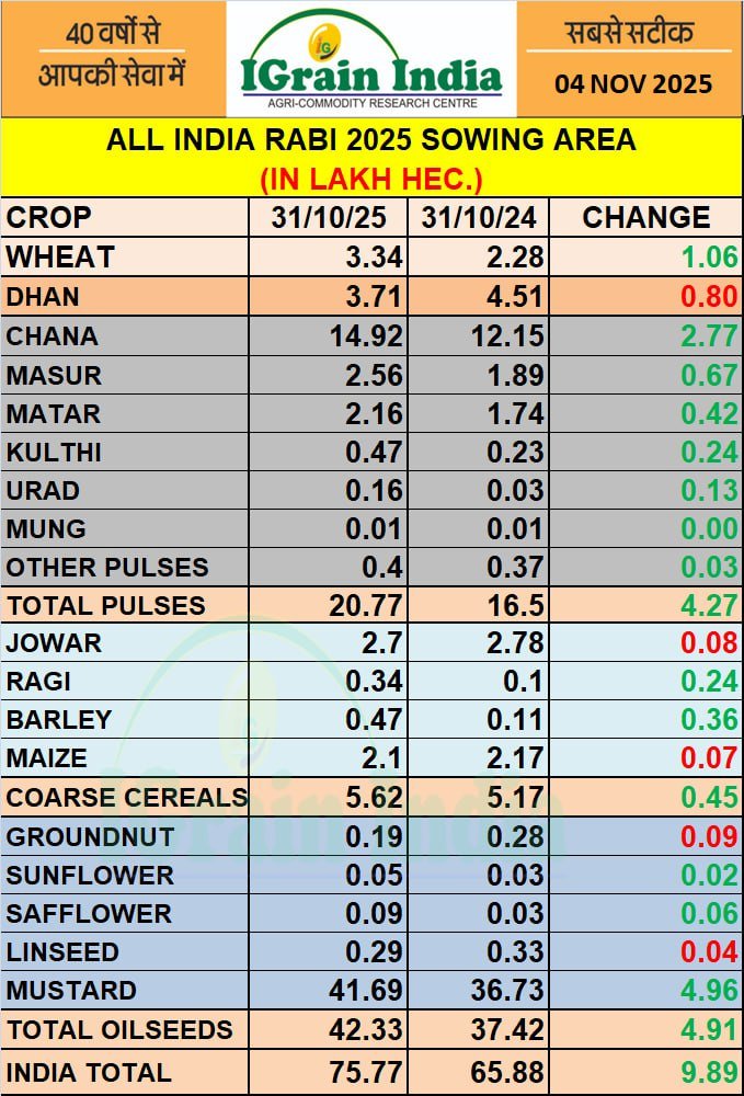 रबी फसलों का बिजाई क्षेत्र बढ़कर 76 लाख हेक्टेयर के करीब पहुंचा