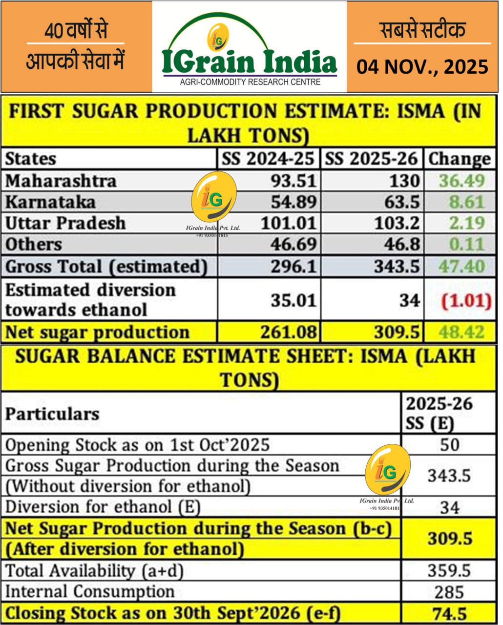 News Capsule: First Advance Estimates of Sugar Production 2025-26: ISMA