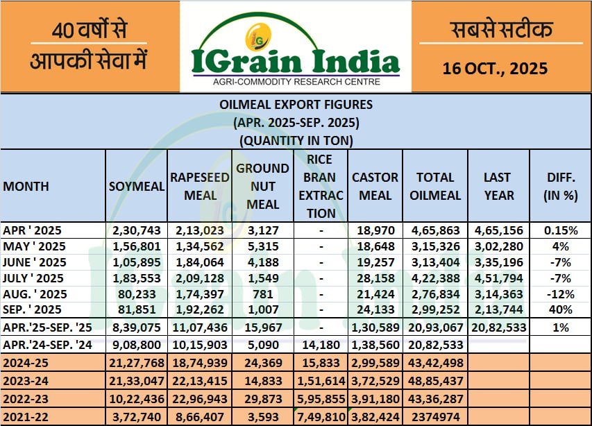 Stability in Half-Yearly Oilmeal Exports: SEA