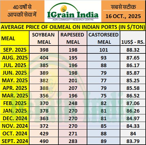 AVERAGE PRICE OF OILMEAL ON INDIAN PORTS