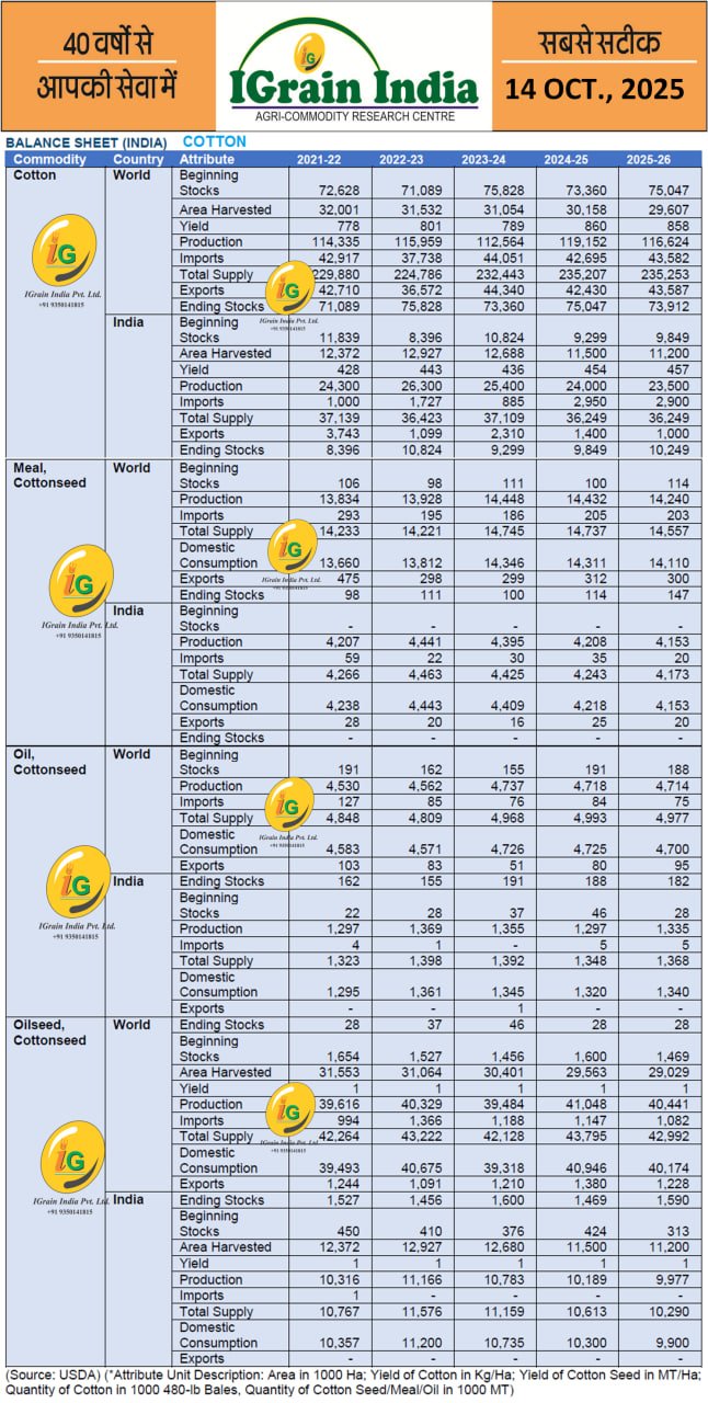 COTTON BALANCE SHEET