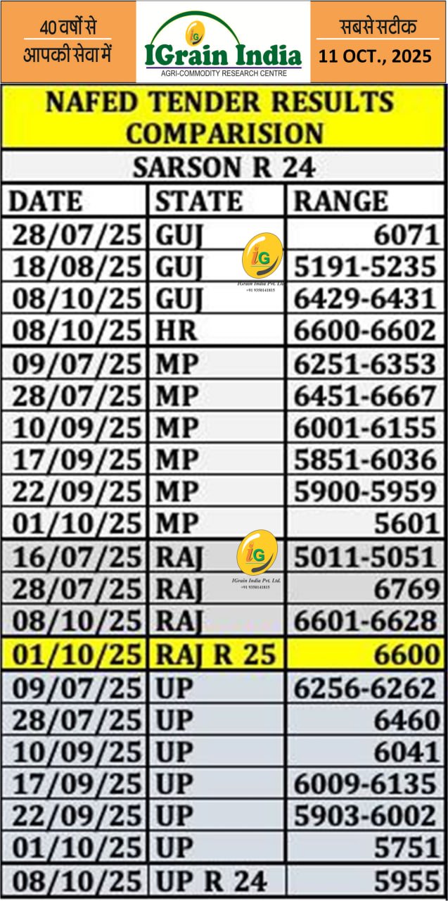 NAFED SARSON TENDER RESULT COMPARISON