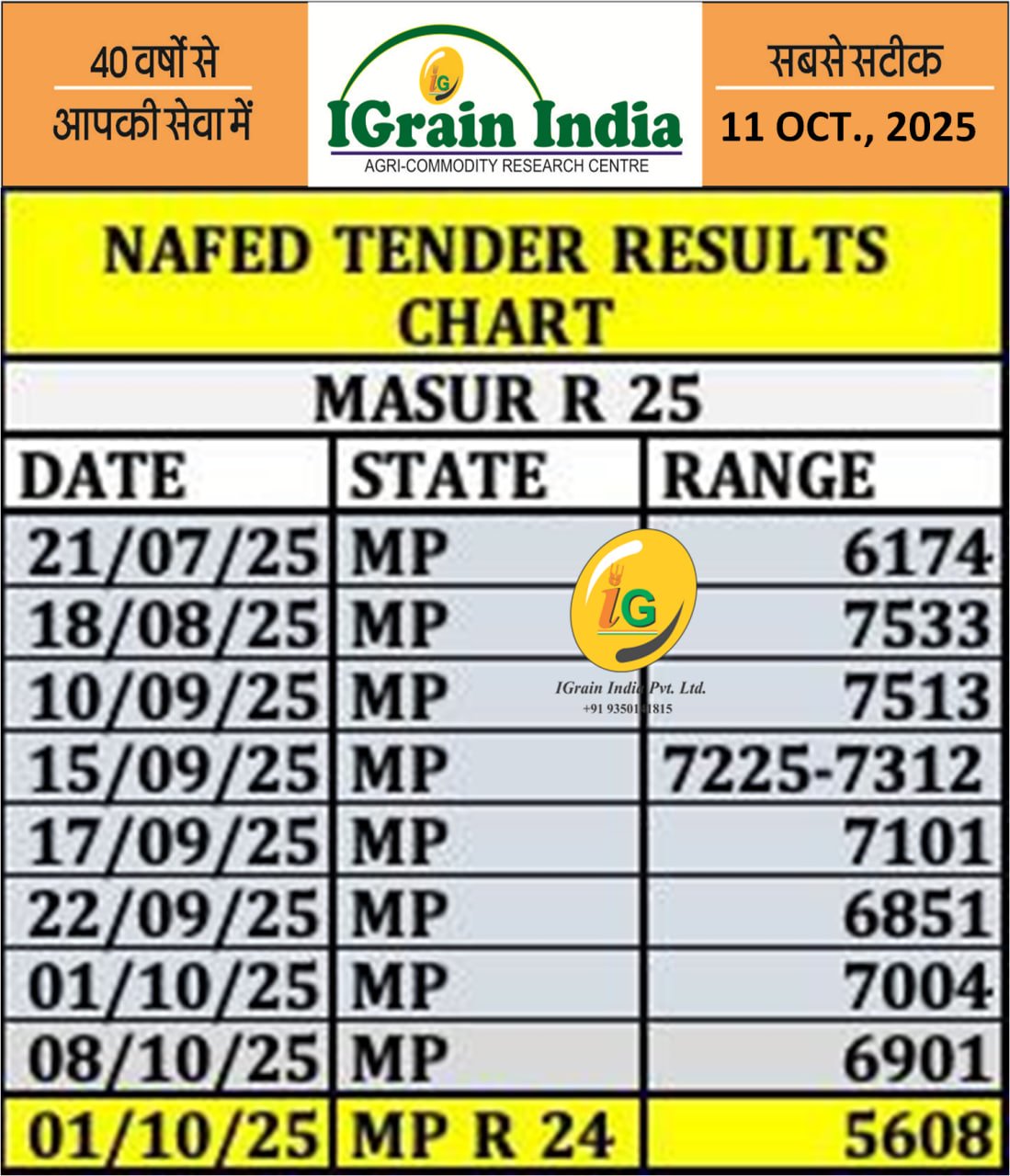 NAFED MASUR TENDER RESULT COMPARISON