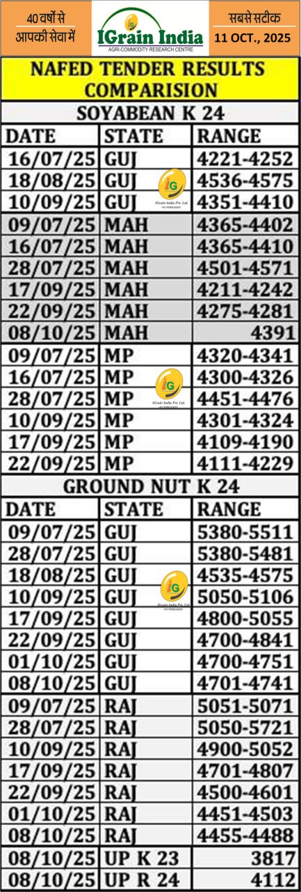 NAFED SOYA/GROUNDNUT TENDER RESULT COMPARISON