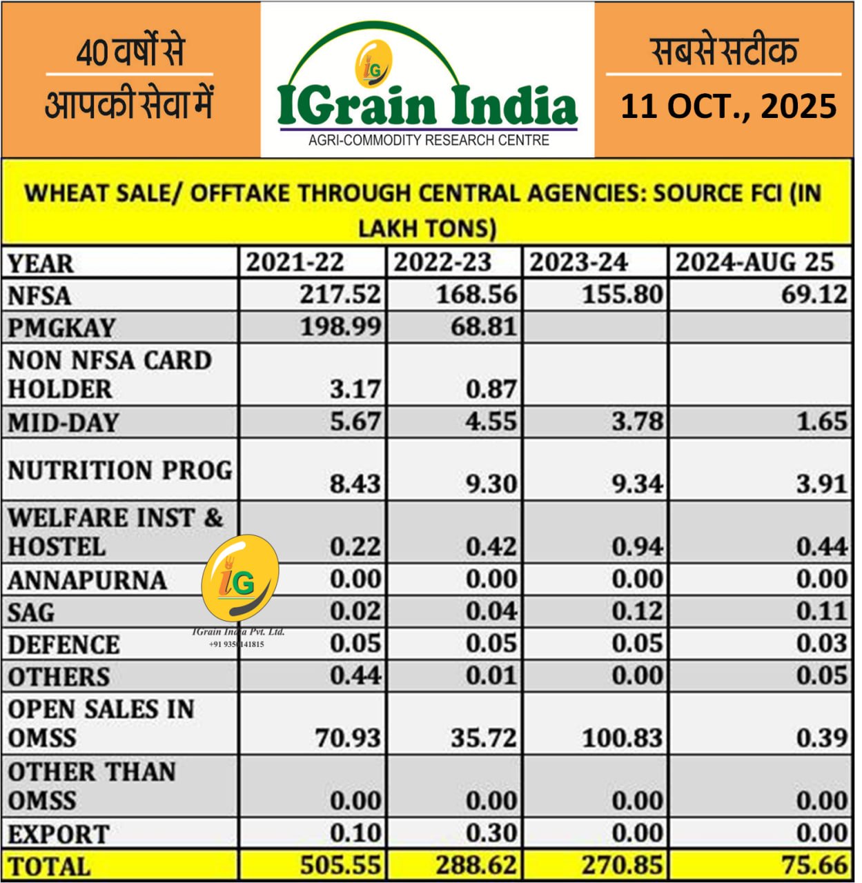 WHEAT SALE OFFTAKE THROUGH CENTRAL AGENCIES